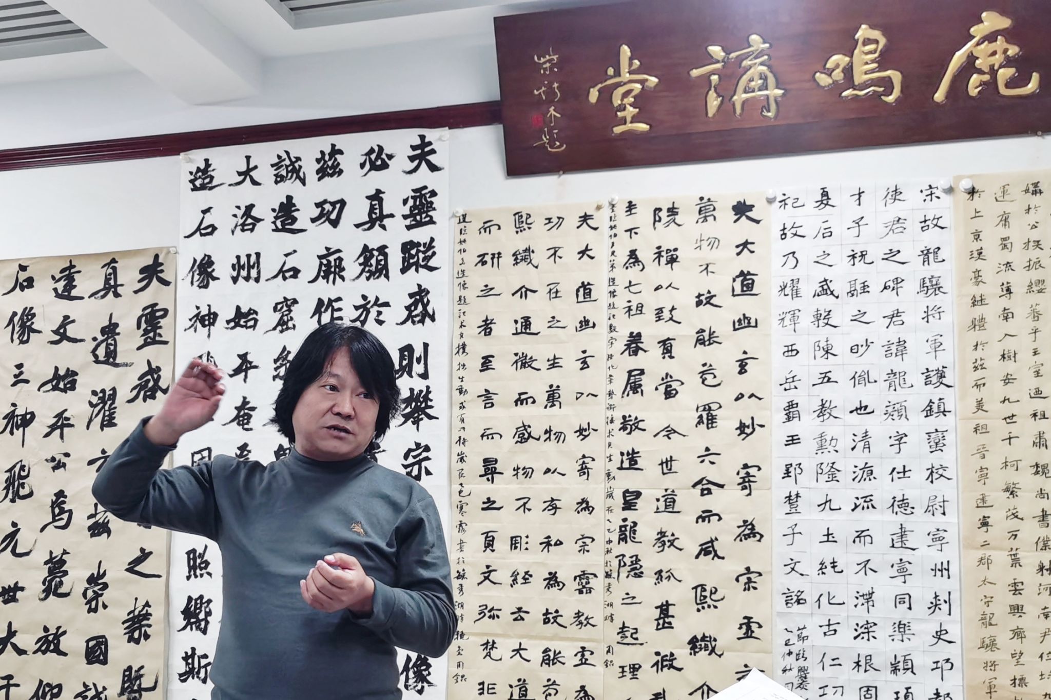 本期教研以“演绎经典·六朝碑刻”为核心主题。六朝碑刻作为中国书法史上“碑学”的重要源头,兼具雄健朴茂的艺术气质与丰富多变的技法体系,本次活动创新采用“作品阐释+作品互评”双轨研讨模式,旨在引导教师们从经典碑刻中汲取养分,探索传统与当代创作的融合路径。活动伊始,各位专业教师依次围绕提交的临摹作品展开深度阐释。