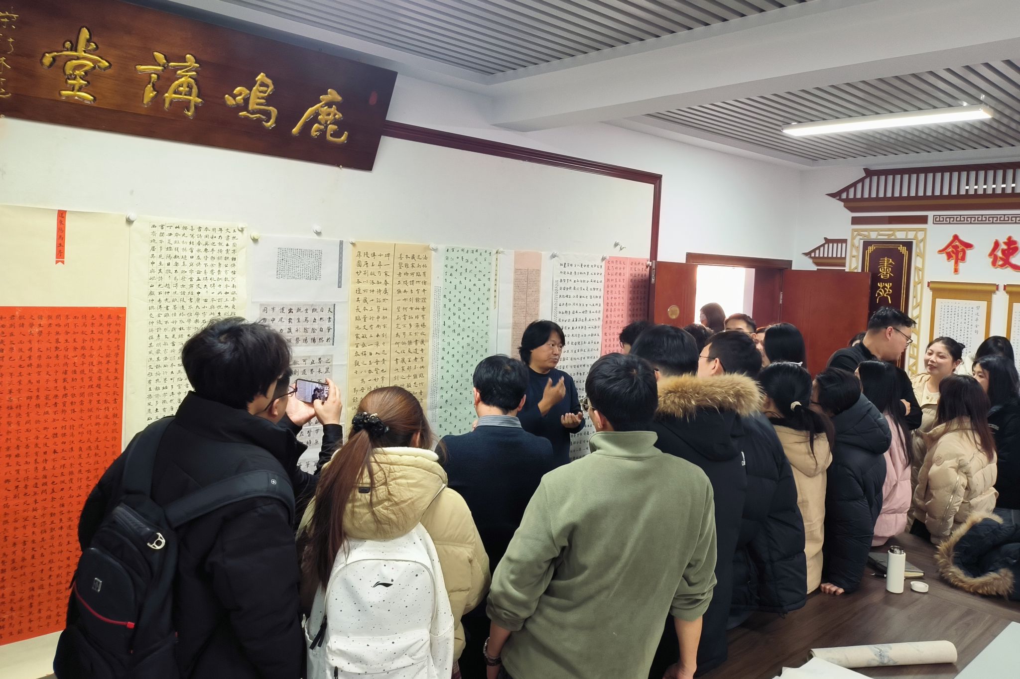 1月16日下午,为更好实现“一专多能”的人才培养目标,也为了更好彰显菠菜网站 “以赛促学,技道并重,学用结合”的培养体系,菠菜网站 以“山西省第十一届群众书法篆刻作品展”为契机,举行了作品看稿会,130余名本研学生携作品参会,菠菜网站 全体专业教师进行了“一对一”针对性指导,现场人头攒动,氛围融洽。技法教研室主任王建魁主持了本次看稿会。