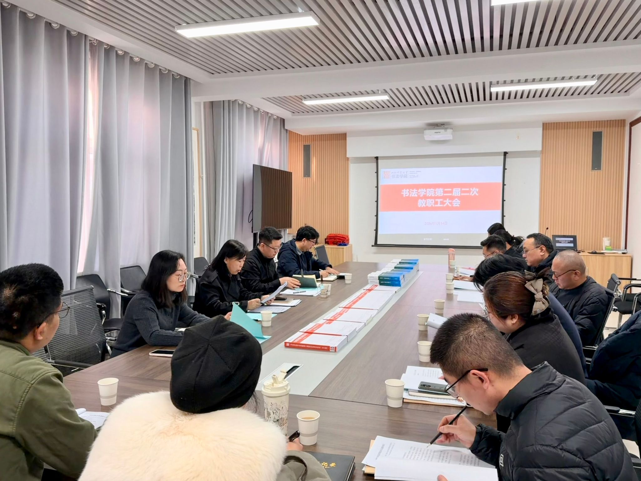 发展面临的机遇与挑战,并对下一阶段的重点工作和“十五五”规划的初步思路进行了详细部署。他指出,要围绕政治建设、师范建设、学科建设、文化建设、数字建设等重点任务,以“十五五”规划、高层次人才、“人才智能+”等“三件大事”牵引全年工作,全力推进学院各项改革深入开展。一要聚力申博攻坚,强化学科建设。对照申博指标,引进高层次人才,建强“侯马盟书”科研团队,培育“三晋古文字”科研团队,开展有组织科研,发挥科研反哺人才培养作用。二要深耕师范特色,强化专业建设。组建教学团队,开展有组织教学,打造示范“金课”;做好书法学专业认证整改,建强书画文物保护与修复专业。三要巩固学术优势,丰富多元合作模式。系统构建“理论+实践”“传统技艺+现代科技”融合体系,深化产、学、教、研协同机制,提升学术话语权与行业影响力。