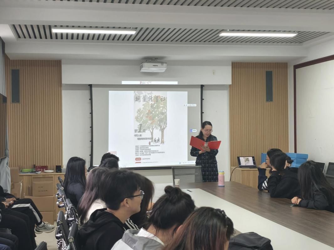 图书资料室顺利举行。本期活动以“书写人格:笔墨间的风骨与性情”为主题,曹亚彬院长、王文清、赵蓉等老师出席本次活动,周柳伊老师担任主讲人。